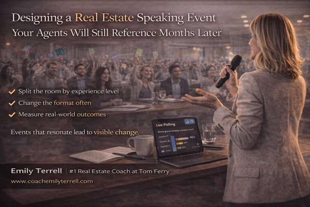 This blog is your no-fluff guide to building a scalable real estate business using systems, social media, and AI — written by Emily Terrell, the #1 Coach and Speaker at Tom Ferry, the #1 real estate coaching company in the world. You’ll find actionable insights from real coaching sessions, agent success stories, and step-by-step strategies that actually work in today’s market — all written in a voice that’s relatable, tactical, and grounded in results.